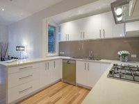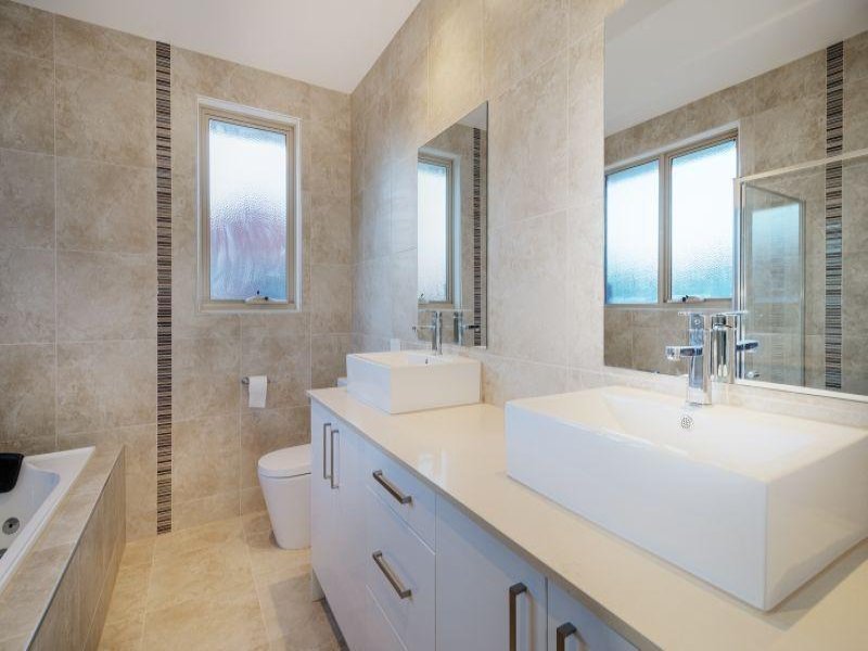 Comprising entrance to living through a double door, master bedroom with WIR and ensuite with floor to ceiling tiles, modern kitchen with waterfall stone bench tops and soft closing cabinets equipped with Bosch appliances, 900mm cooktop/oven and dishwasher, return bench to meals, and sliding doors to outdoor area with undercover Merbau decking, paved concreter area, Merbau timber privacy fence and very low maintenance garden. Upstairs to a second living, main bathroom with double basin and floor to ceiling tiles, two other bedrooms with BIR. Also remote double garage with internal access.