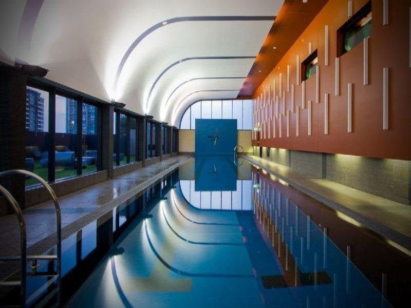Features: Two secure car spaces, heating and cooling, separate laundry, video intercom entry, communal amenities including indoor pool, sauna, gym and private cinema.