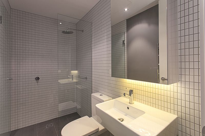 The main sparkling bathroom includes an oversized shower and heated towel rail.