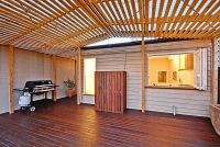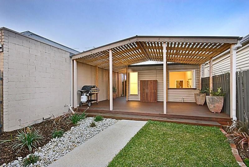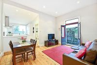 The living area flows into the dining room. The elevated designer kitchen allows an uninterrupted view through quaint cafe windows into the exquisite under-cover decking for all year entertaining through to a romantic north-westerly outdoor retreat and landscaped rear garden of great depth.