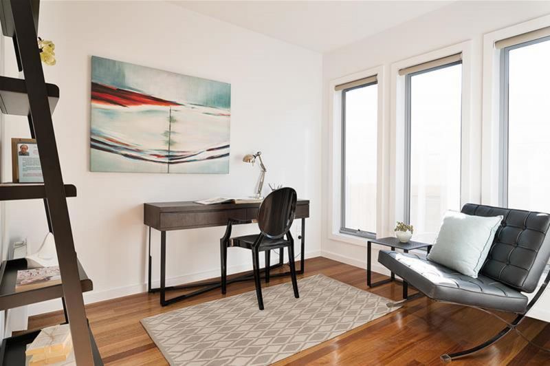 The floorplan allows for flexibility for any lifestyle. The downstairs bedroom is easily transformed into a second living room or oversized study, complete with inbuilt wardrobe with shelving.