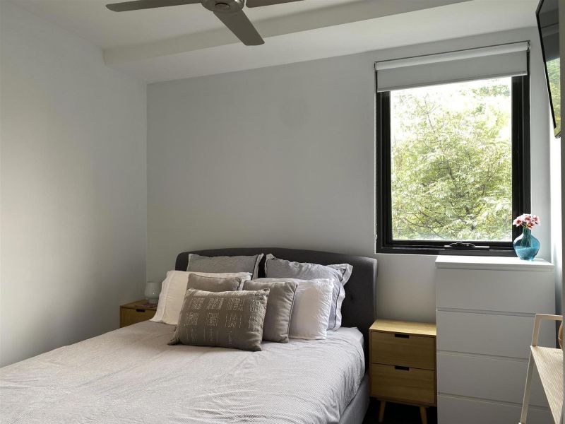 Features generous private balcony big enough for a table, chairs and BBQ, reverse cycle air conditioning/heating, ceiling fans, separate European laundry, double glazing on doors and windows and an internal balcony/storage area off the second bedroom.
