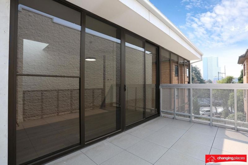 The large entertainers balcony is private and flows from the living area.