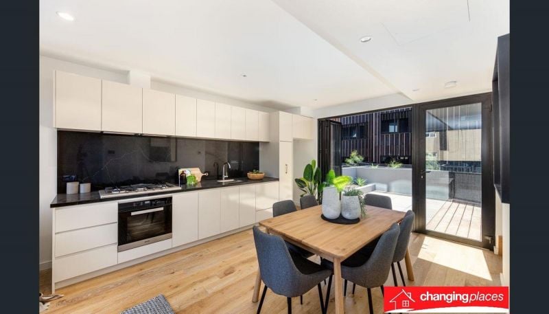 Closing the secure gate behind you and entering your private ground floor paved courtyard you'll be aghast at the sheer beauty of the wooden facade. The welcoming entrance is via the floor to ceiling credenza glass sliding doors, allowing the floating wooden floored living and dining area to seemlessly flow from the entertainers courtyard to within. Not to mention a further balcony on the rear side of the living zone, perfect for a quiet moment or two. The well-appointed kitchen with 5 jet Miele cooktop and under bench electric oven, dishwasher set in a stone benchtop provides ample storage including a metal pull-out pantry.