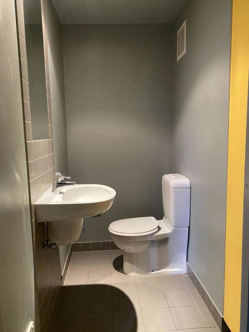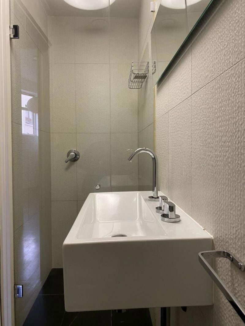 The main bathroom is tucked away down the hallway.