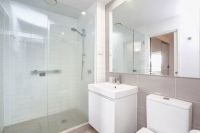 The large bedroom is complete with a wall of mirrored robes and ensuite access to the sleek bathroom and combined laundry.