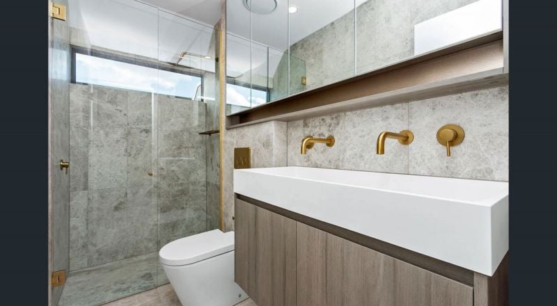 The third level cleverly hides the oversized bedroom by way of a sliding door, with reverse cycle and built in robes (with shelving, drawers and hanging areas) plus another well sized bathroom.