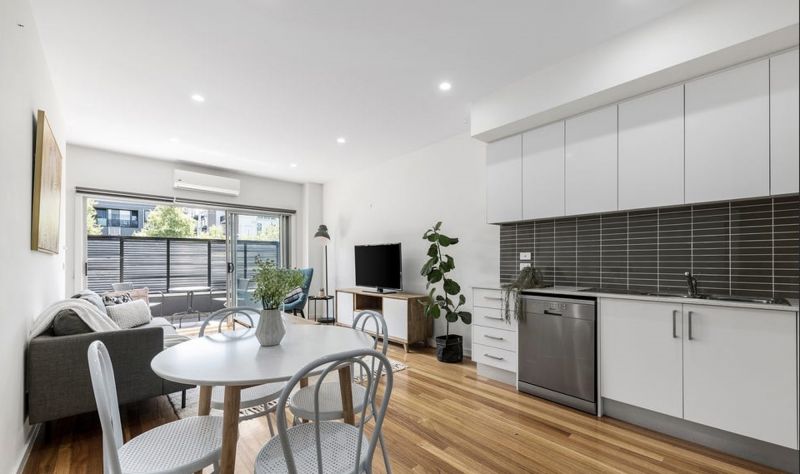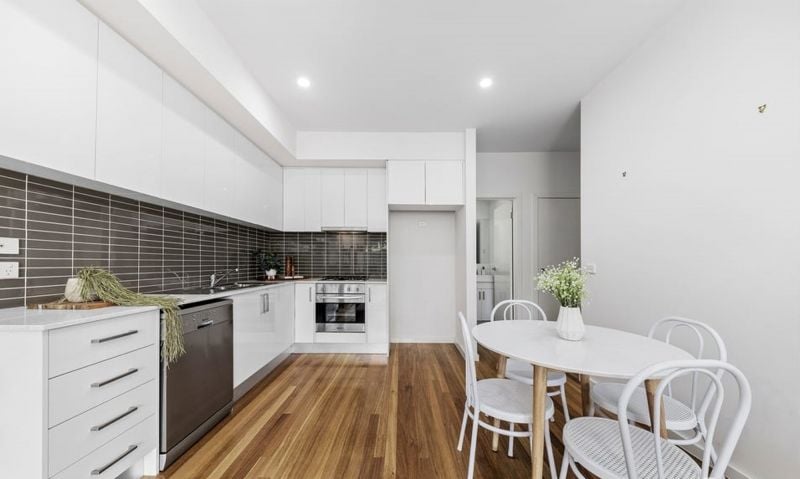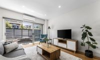 A private top floor master bedroom delivers stunning seclusion along with a sublime ensuite and BIR storage. Other property extras include a sizeable north-facing balcony off the living zone perfect for after work or weekend drinks, ground floor bedroom with BIR and European laundry, reverse cycle heating and cooling, secure intercom, and single garage. Bedrooms with thick blinds for all year round comfort.