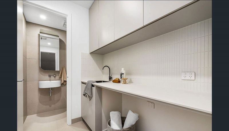 The middle floor also features a family sized laundry, well equipped with cabinetry plus a separate powder room.