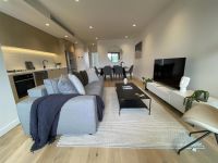 Up the wooden stairs you'll enjoy the sun filled open plan kitchen, living/dining area that leads onto a private balcony, large enough for a table and chairs plus bbq.