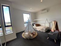 The upper floor features third spacious bedroom plus a generous larger master bedroom suite, both with built in robes, separate ensuite bathrooms plus laundry.