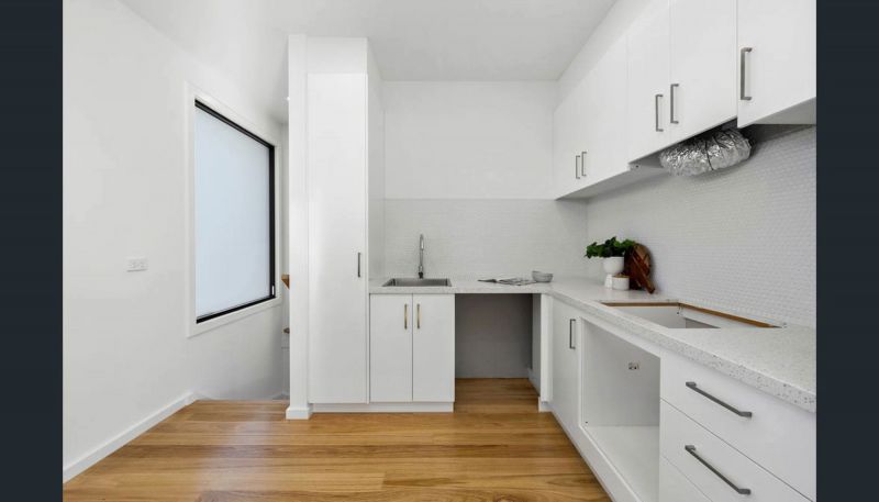 Upstairs you will find large open plan living with a lovely modern kitchen with stainless steel appliances and sweet circular featured white tiled splashback, extending to the hardwood floored living zone with a sunny access to your private balcony featuring high walls, creating desired privacy. There is a powder room, ready for the guests, and a modern family.